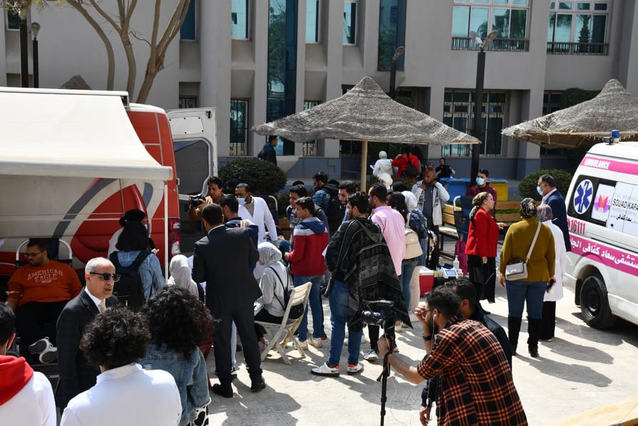 جامعة مصر للعلوم والتكنولوجيا تنظم حملة للتبرع بالدم بالتعاون مع وزارة الصحة| صور