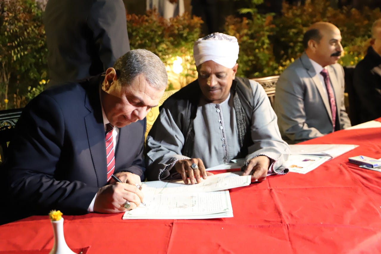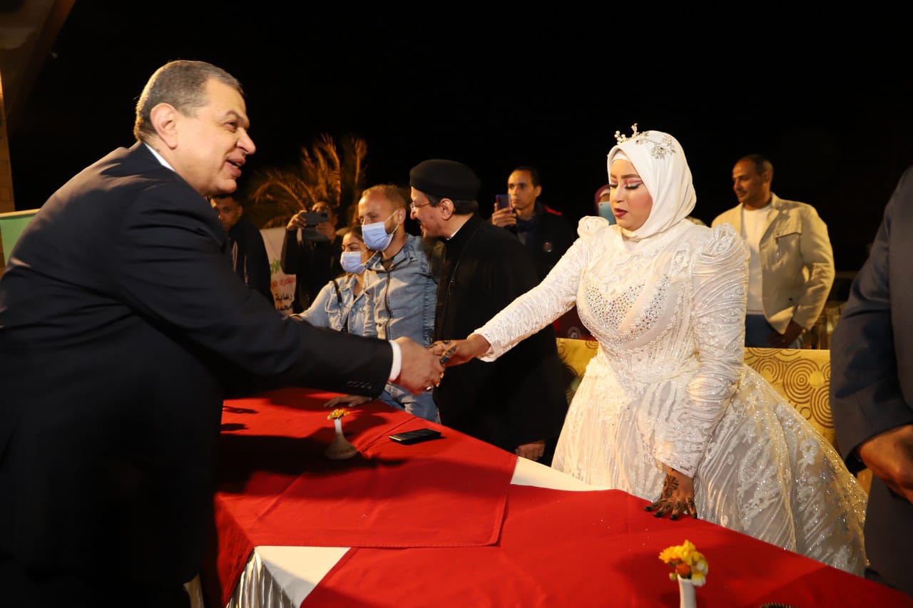 وشارك الوزير والمحافظ في مشهد إنساني رفيع في مراسم عقد قران 4 عروسات من الفتيات أيتام الأب منهم أثنين من ذوي الهمم والعزيمة، وكان الوزير والمحافظ وكيلان لعروسين منهما، والخامسة نصف أكيل من الديانة المسيحية من إجمالي 11 عروس.