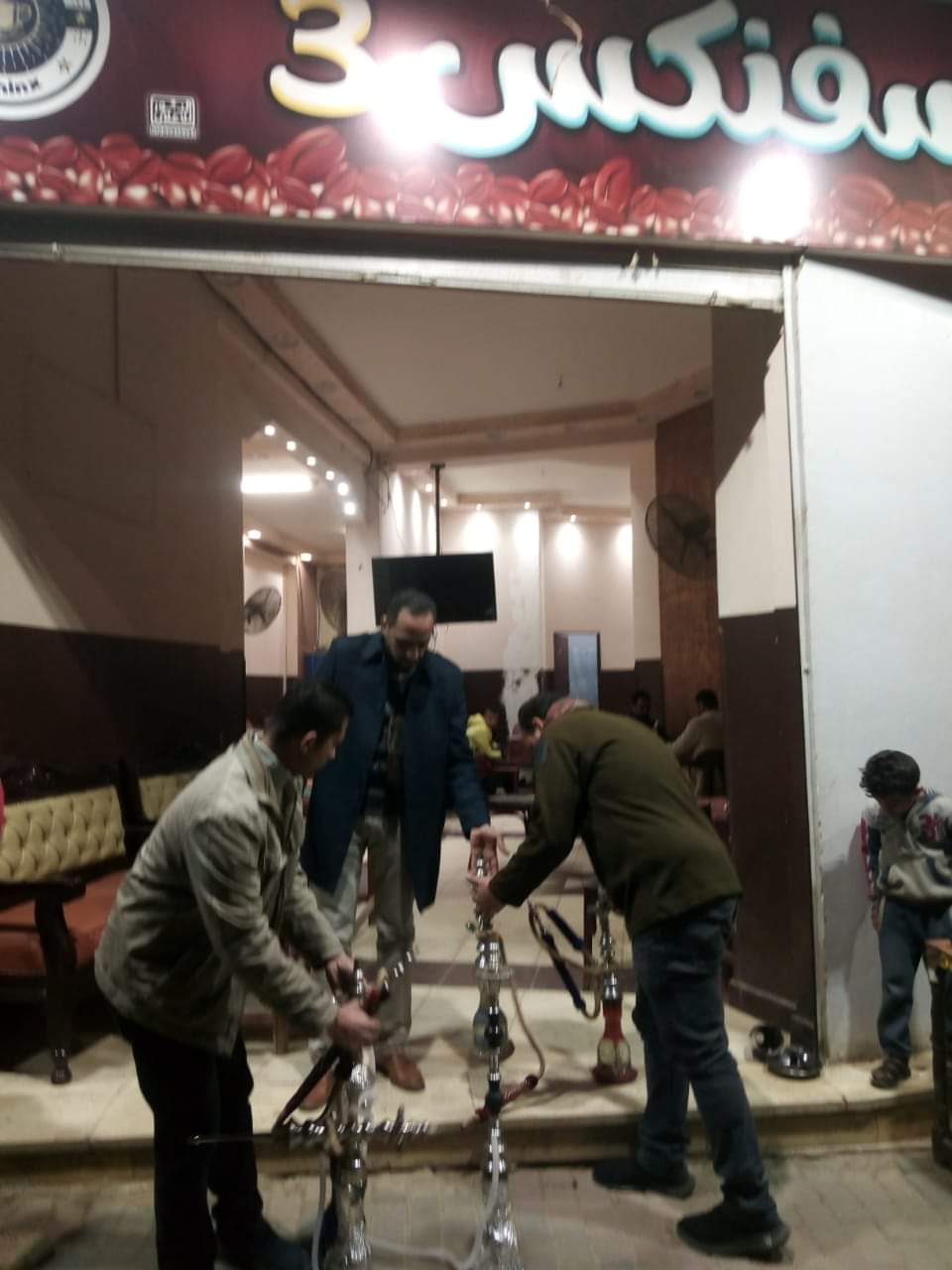 واسفرت عن رفع (٣٤حاله اشغال) وتم التحفظ علي كافة الاشغالات من الباعه الجائلين والمحلات والمقاهي وضبط ٥٠ شيشه وتم إيداع المضبوطات بمخازن الحى لاتخاذ كافه الاجراءات القانونيه تجاه المخالفين .