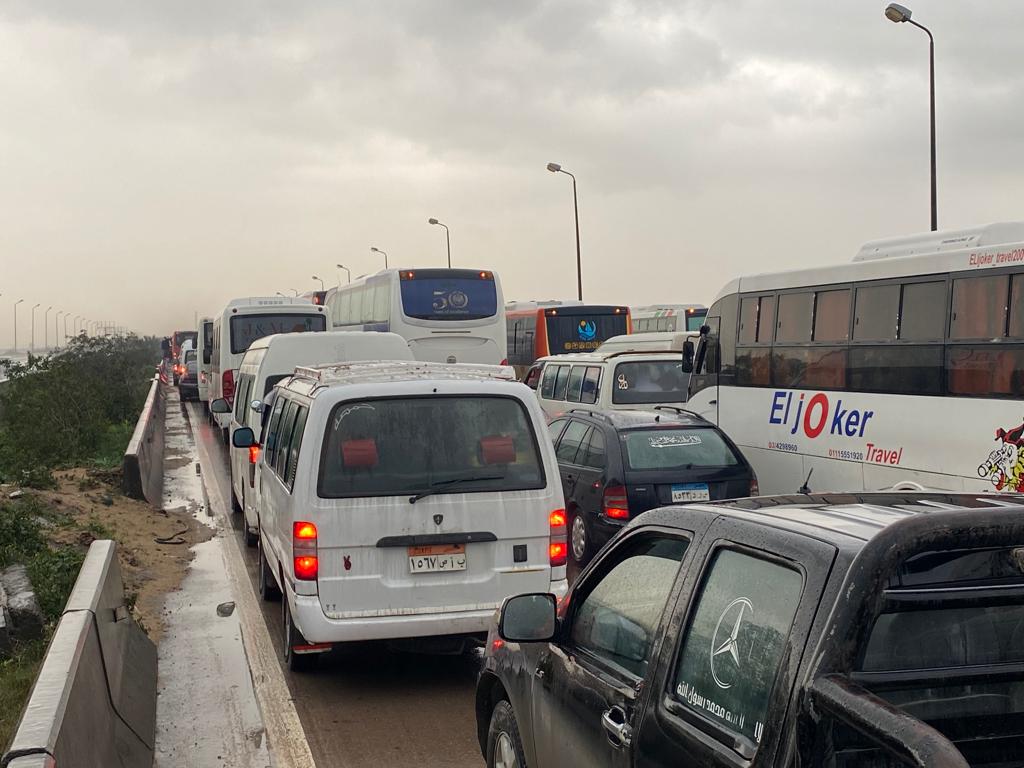 شهد طريق الإسكندرية القاهرة الصحراوي، عدة حوادث بسبب سوء الأحوال الجوية التي تضرب محافظة الإسكندرية منذ الصباح الباكر بسبب نوه الحسوم، وتسبب في تعطل وشلل الحركة المرورية بالطريق.