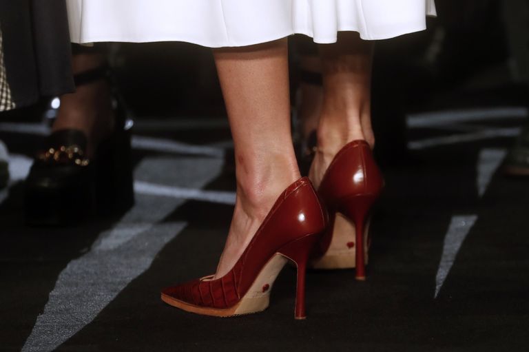 وأكملت الملكة إطلالتها بزوج من الأقراط على شكل الأطواق الذهبية وزوج من الأحذية ذات الكعب العالي من الجلد بلون البورجوندي بتوقيع علامة Magrit الإسبانية، والتي جاءت متناسقة مع حقيبة بطباعة التمساح.