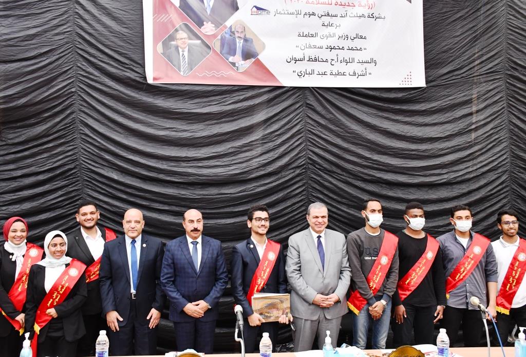 وزير القوى العاملة ومحافظ أسوان يشهدان ختام فعاليات ملتقى السلامة المهنية | صور