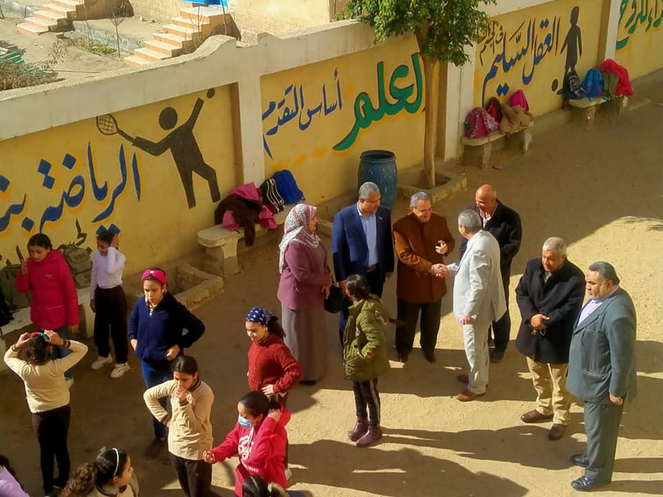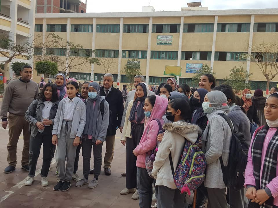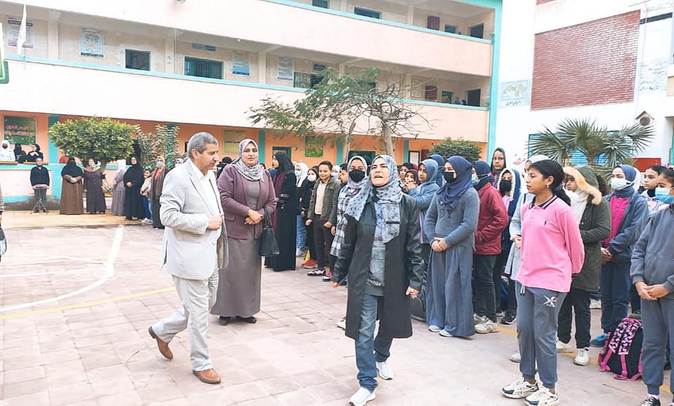و تابع سير انتظام العملية التعليمية بمدرسة الاعدادية بنات والاطمئنان علي انتظام العمل والدراسة وتفقد فصول المدرسة والمعامل والقاعات والمكتبة وناقش الطالبات فيما تم دراسته من المناهج التعليمية وتفقد غرفة الطبيب والعزل.