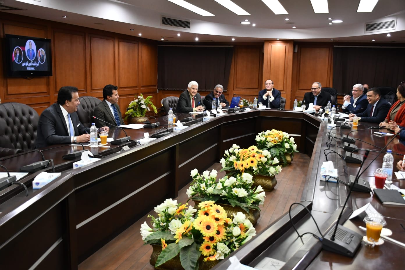 حضر اللقاء الأستاذ الدكتور محمد صبحي حسانين نائب رئيس الاتحاد المصري الرياضي للجامعات والمعاهد العليا، الأستاذ الدكتور عرفة علي سلامة السكرتير العام للاتحاد، الدكتور جمال الشاذلي نائب رئيس جامعة القاهرة لشئون التعليم، وعضوية الاتحاد لكل من "الكابتن أحمد شوبير، الدكتور فتحي ندا، الدكتور عمرو الحداد ممثل الجهة الإدارية"، الدكتور أحمد فريد رئيس جامعة نيو جيزة، الأستاذ الدكتور محمد لطيف أمين المجلس الأعلى للجامعات، الدكتور محمد حلمي الغر أمين مجلس الجامعات الخاصة، الأستاذة الدكتورة مها محمد حسن عضو الاتحاد المصري للجامعات، الدكتور مصطفي بيومي مصطفى عضو الإتحاد المصري للجامعات، الدكتور عاصم خليفة رئيس الاتحاد المصري للإسكواش، الدكتور أحمد فرج رئيس الإدارة المركزية للخدمات الطبية بوزارة التعليم العالي والبحث العلمي.