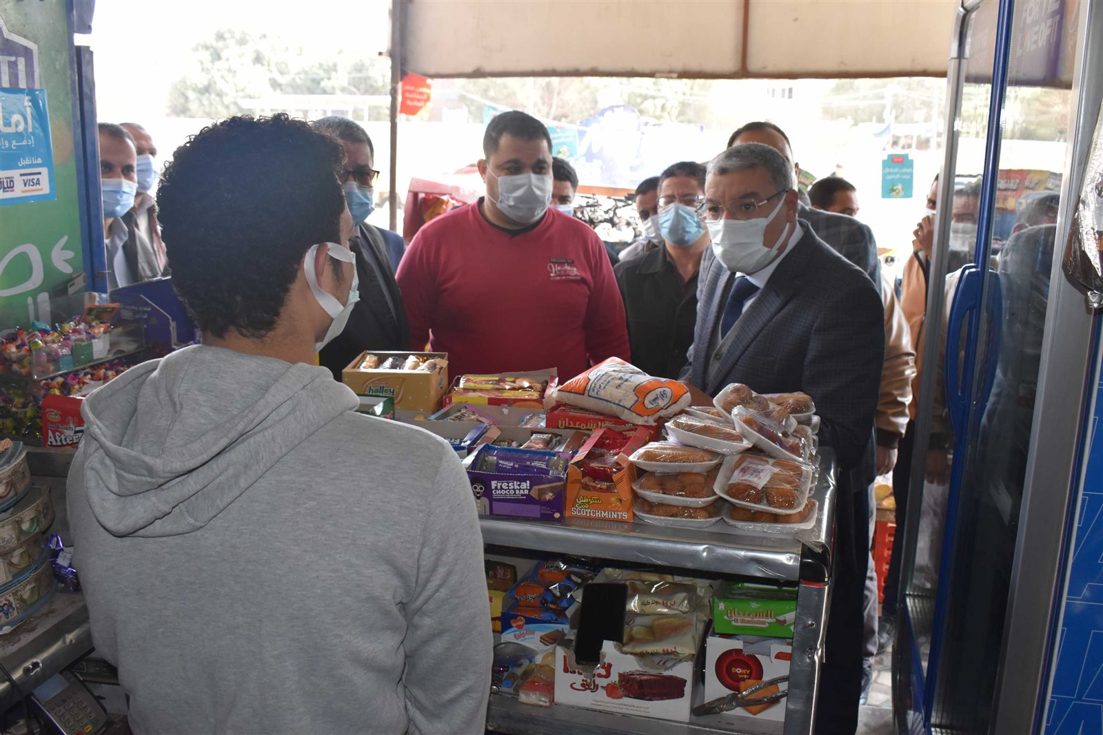 ورافق المحافظ، اللواء محمد عزت رئيس المركز، الدكتور محمد نادي وكيل وزارة الصحة، ممثل مديرية التموين، وعدد الجهات المعنية.
