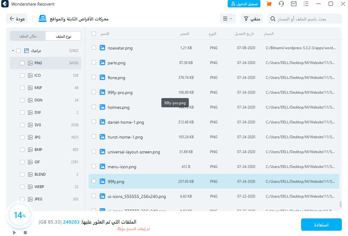 استرجاع الصور المحذوفة عبر برنامج Recoverit
