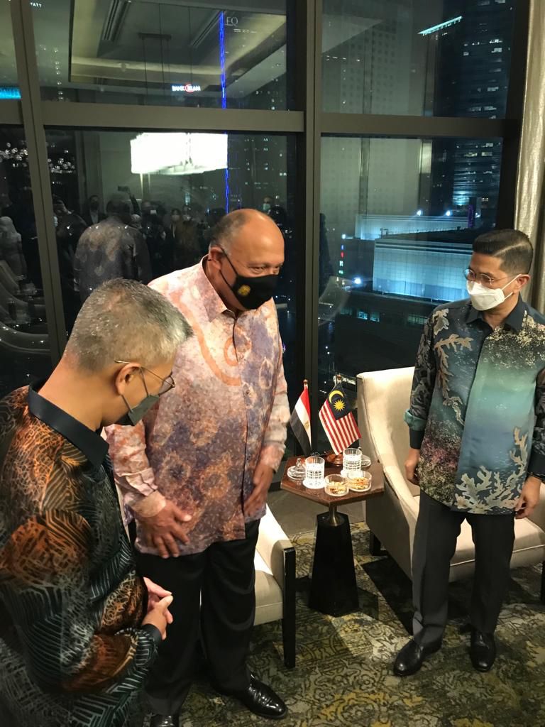 وأقام الوزير الماليزي، على شرف سامح شكري، مأدبة عشاء عمل ضمّت كل من وزيريّ المالية والاقتصاد الماليزييّن، ولفيف من المسؤولين الحكوميين وكبار قادة وممثلي مجتمع الأعمال الماليزي، من بينهم رئيس مجلس إدارة شركة "بتروناس" الماليزية، وذلك في إطار الاهتمام بالتواصُل البنّاء بين البلدين من أجل تعزيز التعاون المشترك لما فيه صالح البلدينّ والشعبيّن الصديقيّن.