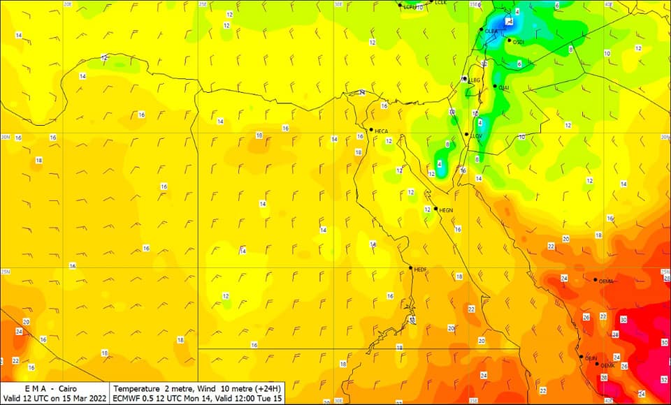 ونوهت هيئة الأرصاد إلى ارتفاع تدريجى فى درجات الحرارة على كافة الأنحاء بدءا من يوم الخميس الموافق ١٧مارس ٢٠٢٢.
