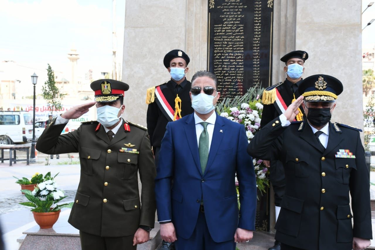محافظ الفيوم يضع إكليلا من الزهور على النصب التذكاري للشهداء