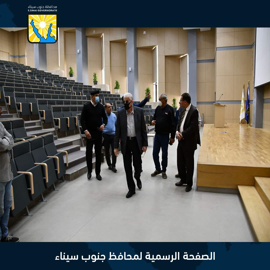 كما تفقد قاعة جامعة الملك سلمان الدولية التي يتم بها عقد ندوة في ذكرى تحرير طابا بعنوان " حقائق والدروس المستفادة" يلقي المحاضرة الدكتور مفيد شهاب عضو هيئة الدفاع عن طابا ومحاضرة الأمن القومي يلقيها الدكتور سمير فرج المفكر الإستراتيجي.