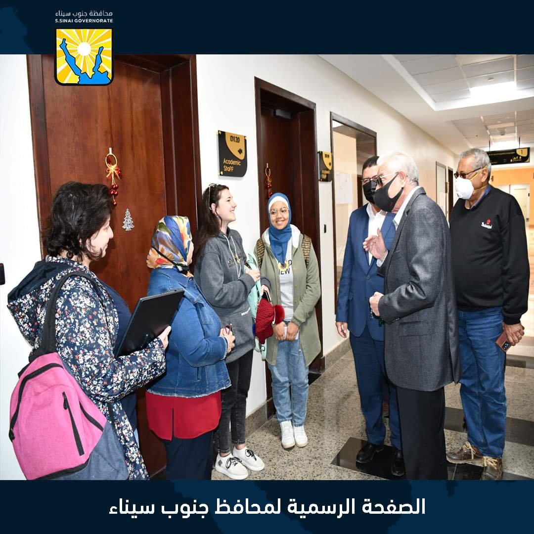 رافق المحافظ اللواء محمود السولية مستشار المحافظ للمحليات، واللواء عبد الفتاح حلمي مفوض المحافظ للإعلام، وكان في استقبالهم الدكتور تامر عباس مدير فرع جامعة الملك سلمان الدولية بشرم الشيخ.