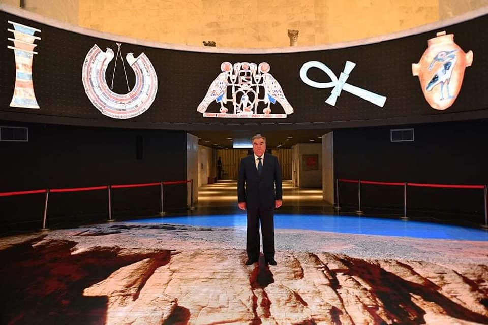 زار إمام علي رحمان، رئيس جمهورية طاجيكستان، المتحف القومي للحضارة المصرية على هامش زيارته الرسمية لمصر التي قام بها منذ عدة أيام وتعرف على ما يضمه من كنوز وأبدى إعجابه بما يضمه من مقتنيات أثرية.
