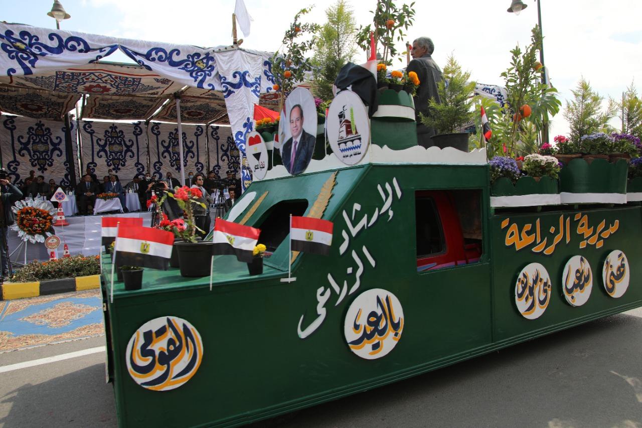 وتضمنت الاحتفالية حزمة من الفعاليات والتي شملت استعراض مركبات الوحدات المحلية أثناء مرورها أمام المنصة، حيث تم تزيين السيارات بأشهر المعالم الأثرية والرموز التاريخية والمشروعات القومية التي تميز كل مركز، حيث حملت سيارة مركز ومدينة بني سويف نموذجًا مجسما للطائرة ميج 21 التي شاركت في حرب أكتوبر وتم إهداؤها للمحافظة لتوضع في ميدان العبور بالمدخل الشمالى للمدينة العاصمة، وسيارة أخرى حملت مجسما لتمثال العبور، الذي قام بنحته الفنان جمال السجيني في عام 1975م.