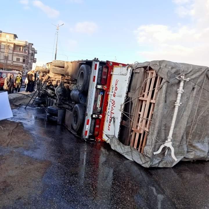 انقلاب سيارة نقل على طريق نوسا الغيط المنصورة