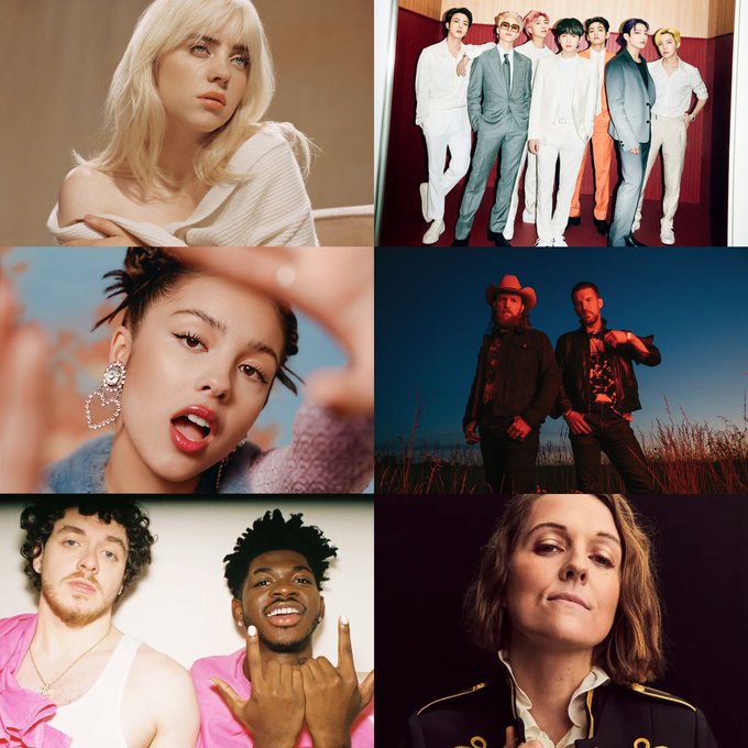 أعلنت، منذ قليل،أول قائمة للمؤدين في حفل توزيع جوائز الجرامي العالمية، وتضمنت القائمة كلا من فرقة BTS، والمغنية وكاتبة الأغاني أوليفيا رودريجو، ومغني الراب ليل ناز اكس، وجاك هارلو، بالإضافة للمغنية الشابة الشهيرة والمثيرة للجدل بيلي ايليش، وبروذرز اوزبورن، والمغنية براندي كارلايل.