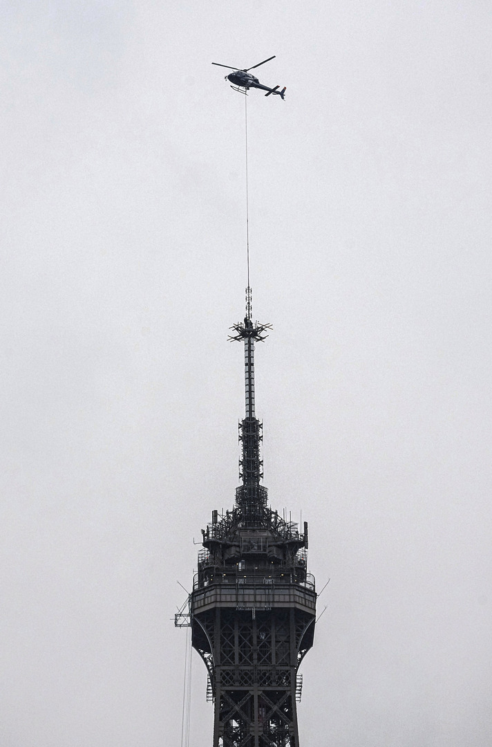 ازداد ارتفاع برج إيفل ستة أمتار اليوم الثلاثاء بعد أن رفع المهندسون هوائي اتصالات جديدًا فوق أحد أكثر المعالم شهرة في فرنسا.