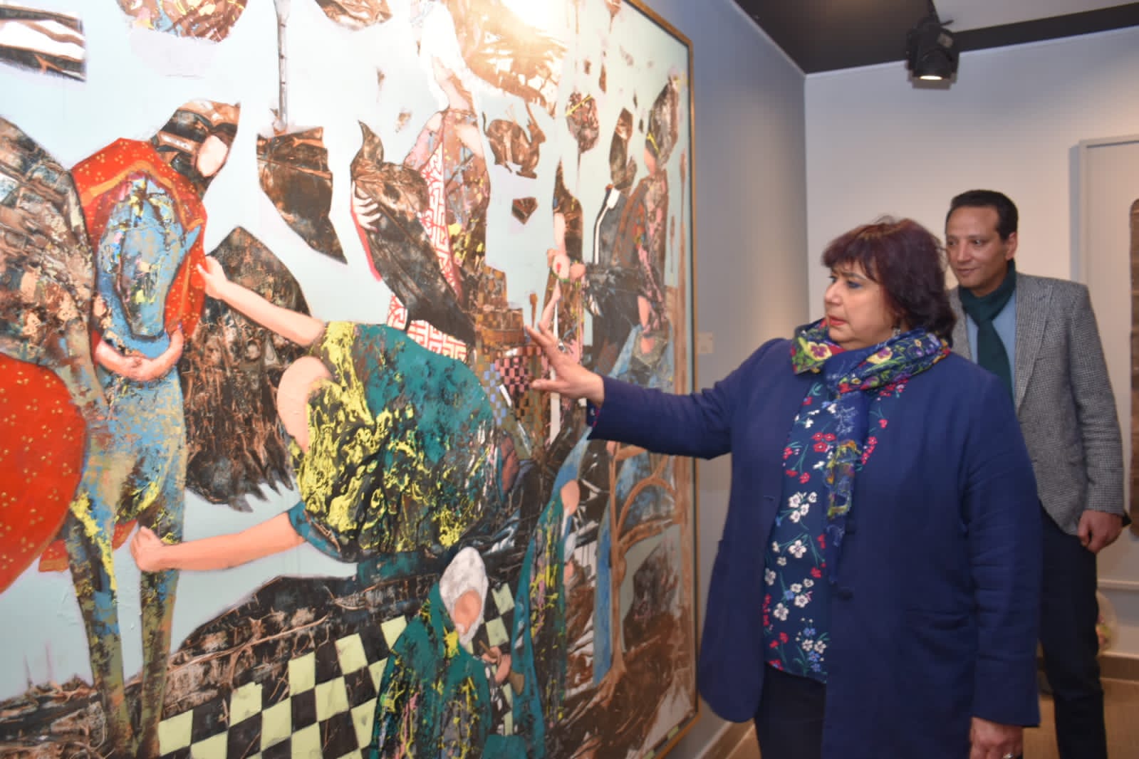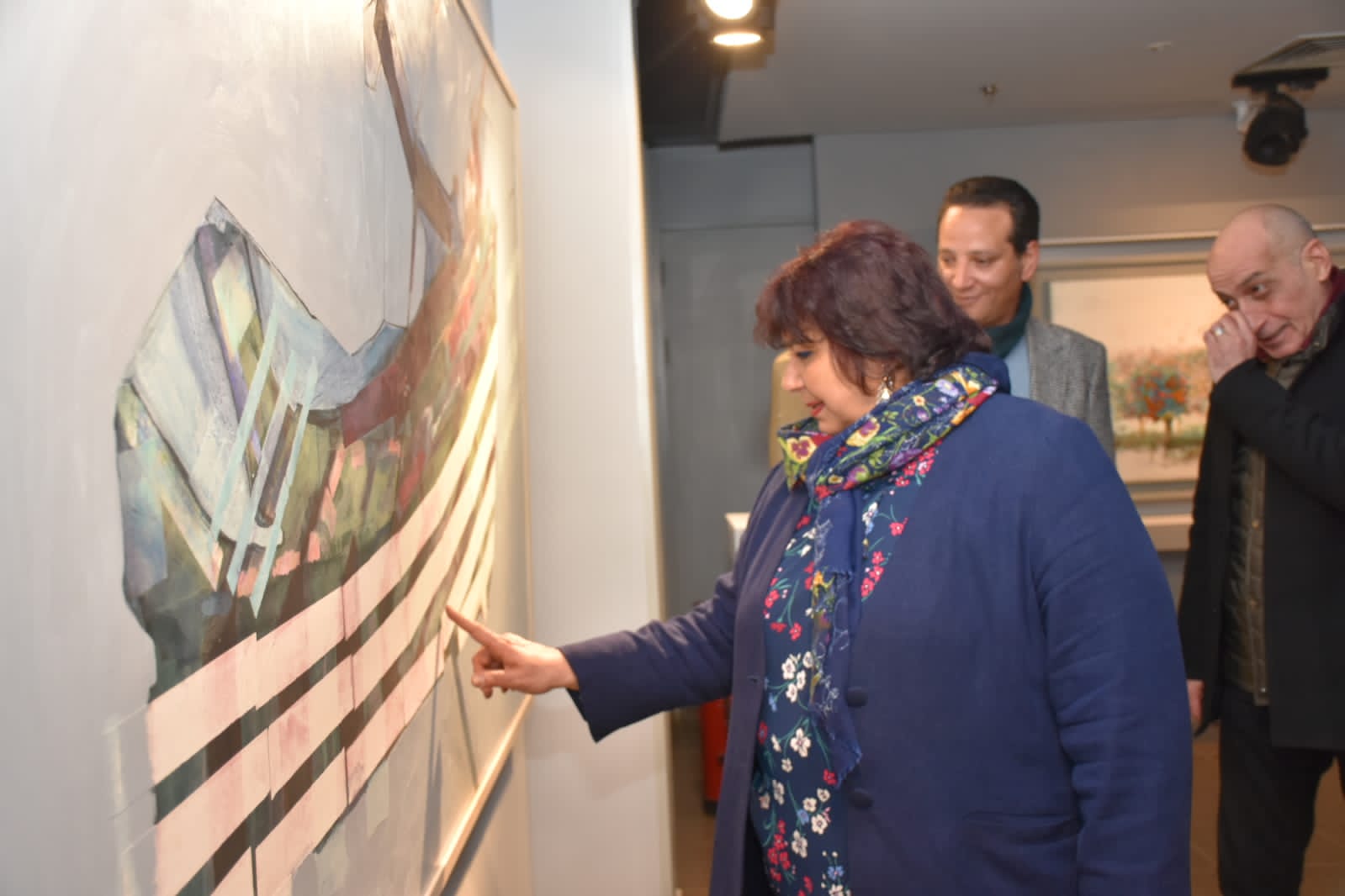 تفقدت الفنانة الدكتورة إيناس عبد الدايم وزيرة الثقافة الإصدار الأول من معرض المشهد بمجمع الفنون (قصر عائشة فهمي) بالزمالك بحضور الدكتور خالد سرور رئيس قطاع الفنون التشكيلية، الفنان إيهاب اللبان مدير المجمع وعدد من التشكيليين والنقاد والمهتمين.
