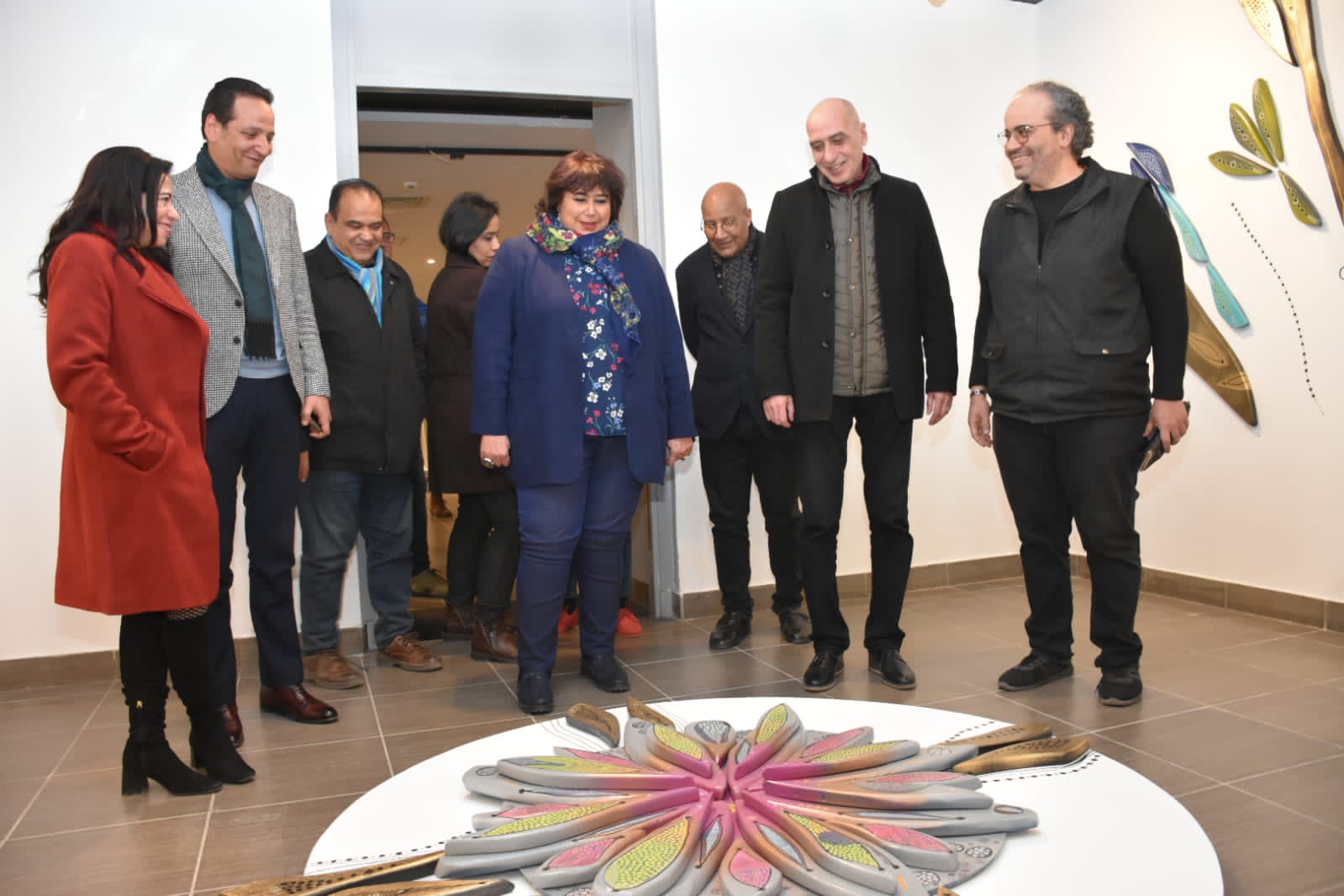 وزيرة الثقافة تتفقد الإصدار الأول من معرض المشهد بمجمع الفنون