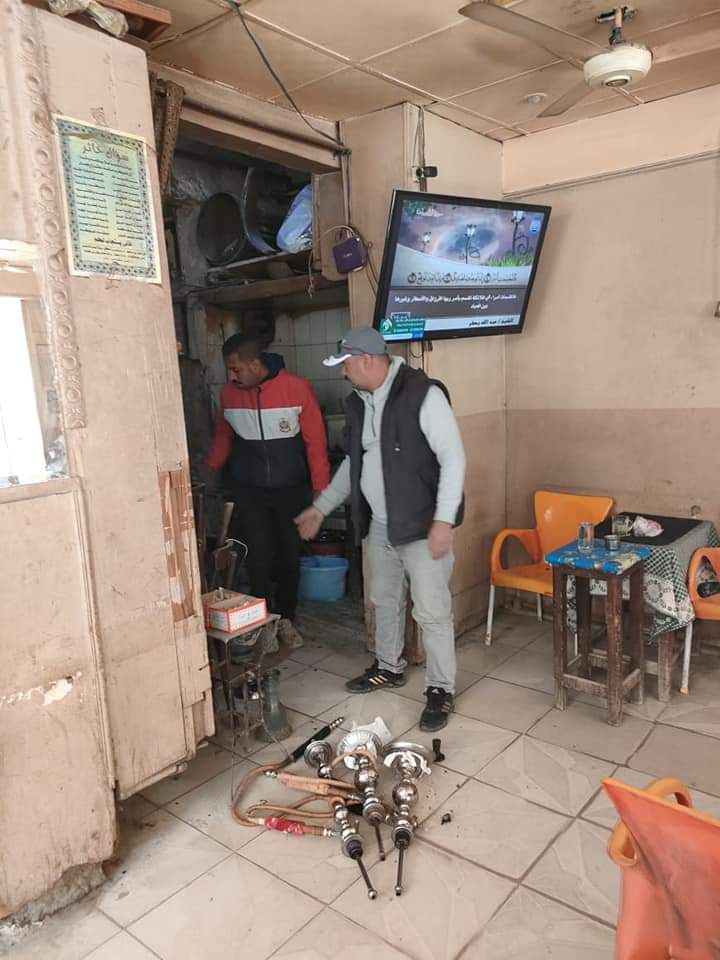 وخلال الحملة تم مراجعة تراخيص بعض المحال والمقاهي بنطاق الحي والتأكد من وجود تراخيص من عدمه ومدى تطبيق الإجراءات الاحترازية وتنفيذ قرارات رئيس مجلس الوزراء الخاص بحظر تقديم الشيشة.