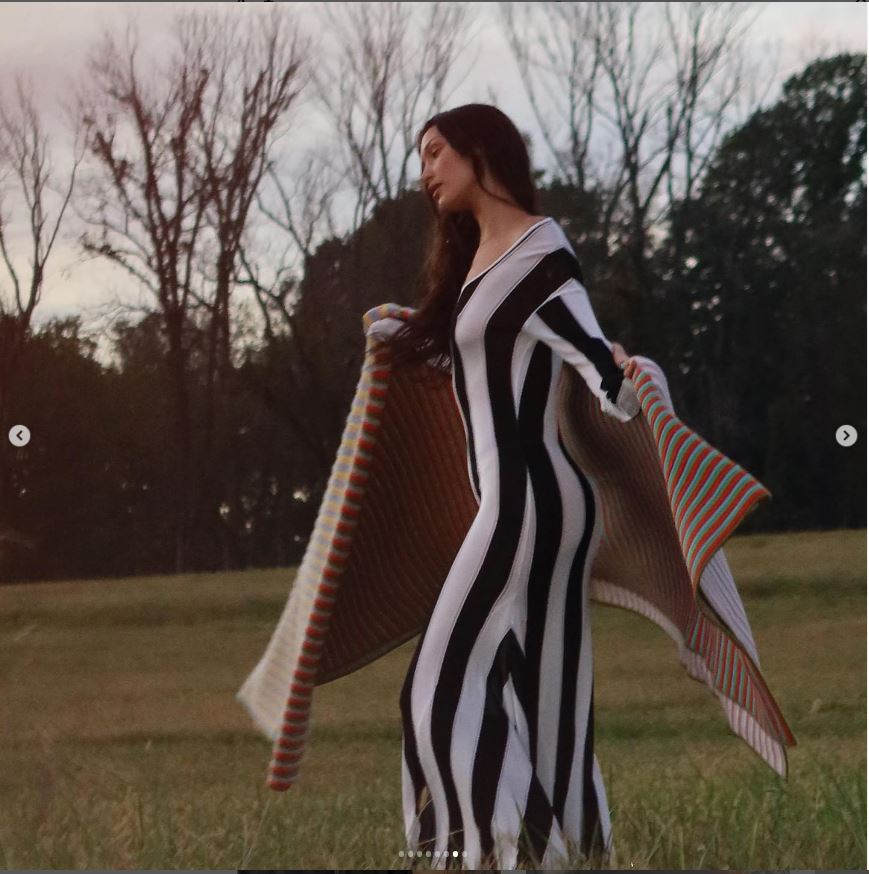 نشرت عارضة الأزياء الأمريكية الجنسية والفلسطينية الأصل بيلا حديد، صور أحدث جلسة تصوير خضعت لها، عبر حسابها الرسمي علي موقع الصور والفيديوهات “انستجرام”، وذلك بعد ساعات من حوارها الصادم والصريح لمجلة Vogue، التي كشفت فيه عدد من أسرار حياتها الخاصة ومعانتها مع المرض النفسي، وظهرت بيلا حديد في الصور الجديدة وسط الطبيعة في أحد الحدائق وتميزت ملابسها بالبساطة والجمال.