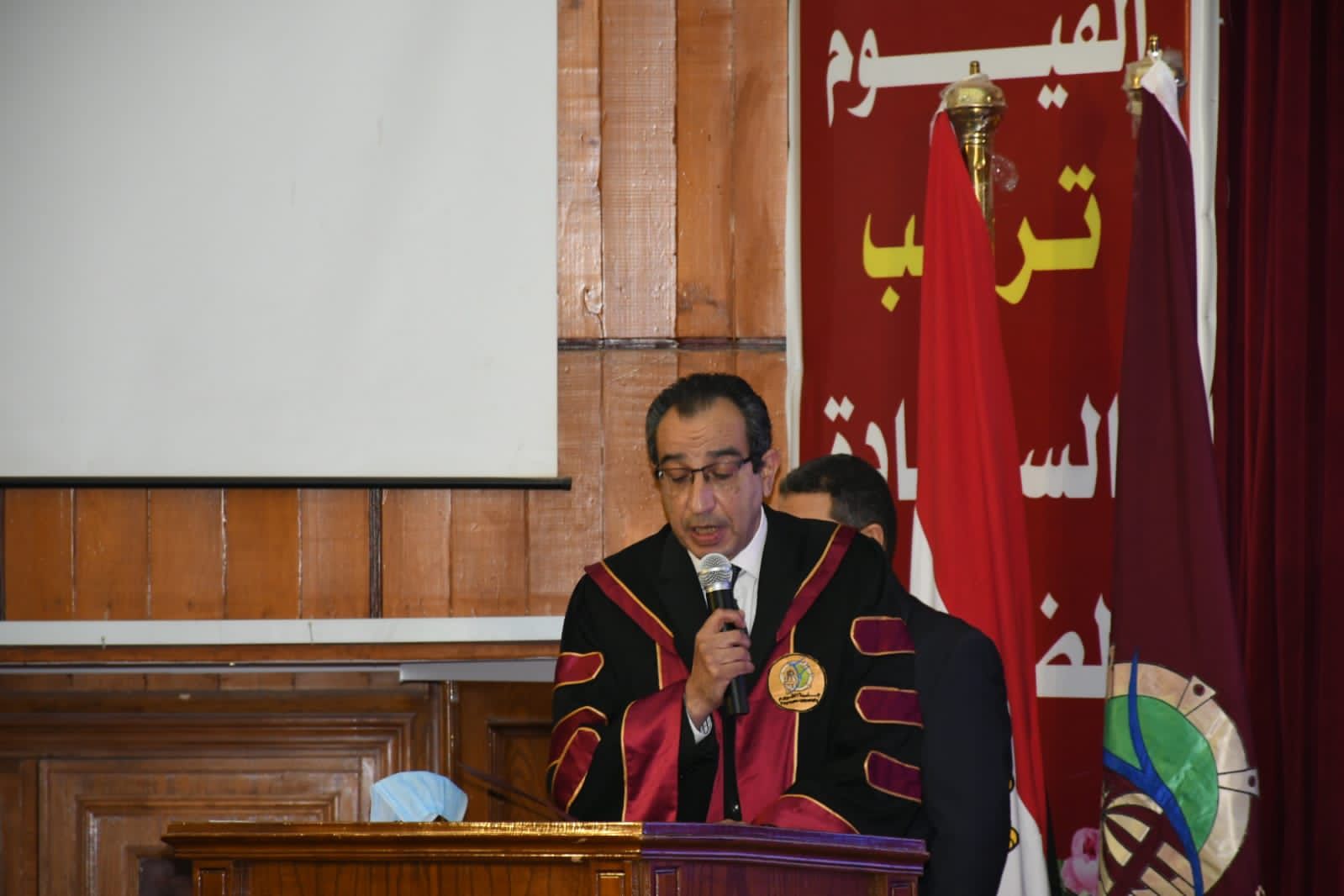 وقال محافظ الفيوم، أنه سعيد للتواجد مع كوكبة من علماء مصر، والطلاب المتفوقين والمتميزين بالأنشطة، وتتزامن الاحتفالية مع احتفال المحافظة بعيدها القومي، وحلول شهر شعبان واقتراب الشهر الفضيل، مقدمًا شكره لرئيس جامعة الفيوم ومجلس الجامعة الموقر لدعوته الكريمة، لاحتفالية عيد العلم، مشيرًا إلى أن هذا التكريم تأكيد لمكانة العلم والعلماء في وطننا الحبيب، وأكد على الاهتمام بالعلم والمثابرة علية لأنه أساس تقدم الشعوب ونهضتها،لافتًا إلى أن المحافظة ترحب بكافة أوجه التعاون مع الجامعة في المجالين الخدمي والتنموي.