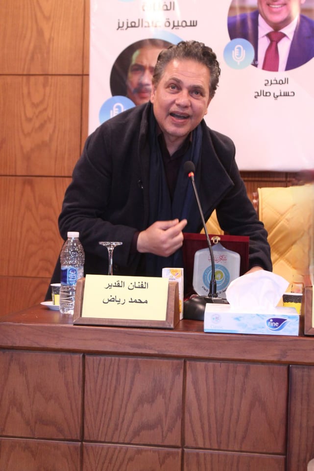 وخلال كلمته أعرب الفنان محمد رياض عن سعادته بوجوده في كلية الإعلام واعتزازه بالمجتمع الجامعي؛ فهو النبتة الأساسية التي شكلت ثقافته وشخصيته الفنية، مشيدًا بدور الأزهر الوسطي ومعتزًا بمكانته في العالم الإسلامي أجمع.