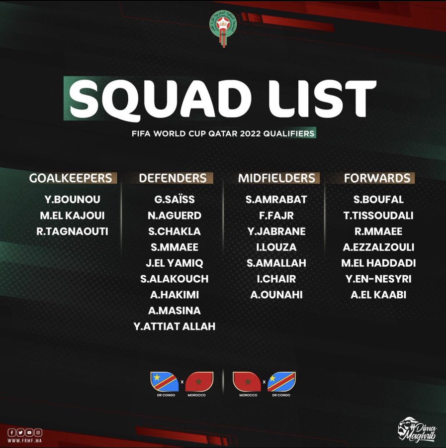 بقيادة نجم برشلونة الزلزولي.. قائمة منتخب المغرب لمباراتي الكونغو المؤهلة لكأس العالم