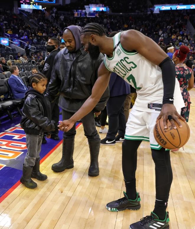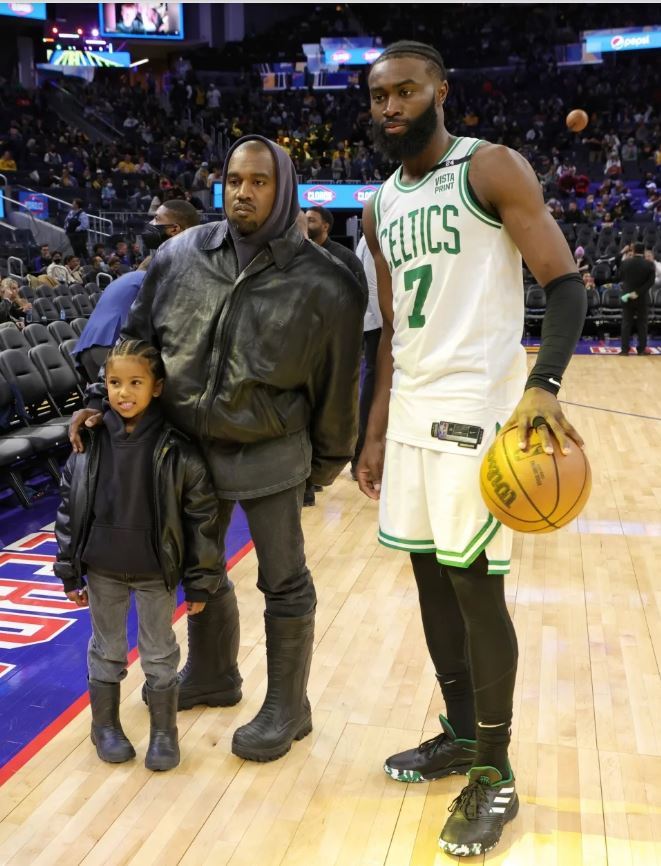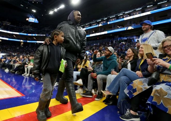وظهر كانييه ويست جالسًا في الصف الأول لمباراة كرة السلة الأمريكية وجلس بجانبه ابنه ساينت ويست، الذي ظهرت علي ملامحه علامات الملل، فيما انشغلت والدة كانييه ويست بالحديث مع أصدقائه الجالسين بجانبهم.