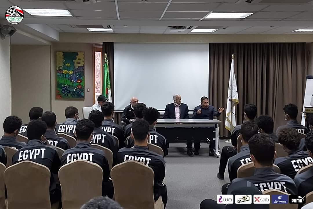 نجوم الغد.. اجتمع جمال علام رئيس الاتحاد المصري لكرة القدم ببعثة المنتخب الوطني للناشئين مواليد 2006 فور وصوله إلى الجزائر.