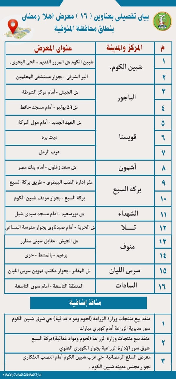 أماكن 16 معرضًا لأهلًا رمضان بالمنوفية