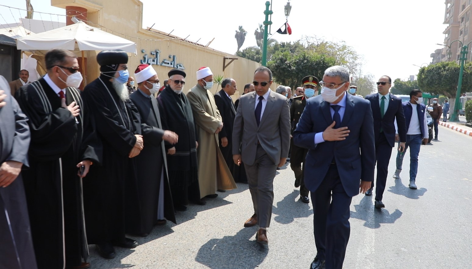 رافق المحافظ، الدكتور محمد أبو زيد نائب المحافظ، اللواء محمد عبد التواب، مدير أمن المنيا، اللواء تامر سعيد السكرتير العام للمحافظة، اللواء أ.ح ياسر عبدالعزيز السكرتير العام المساعد وعدد من أعضاء مجلسي النواب والشيوخ والقيادات الأمنية والتنفيذية، ووكلاء الوزارة، ورجال الدين الإسلامي والمسيحي.