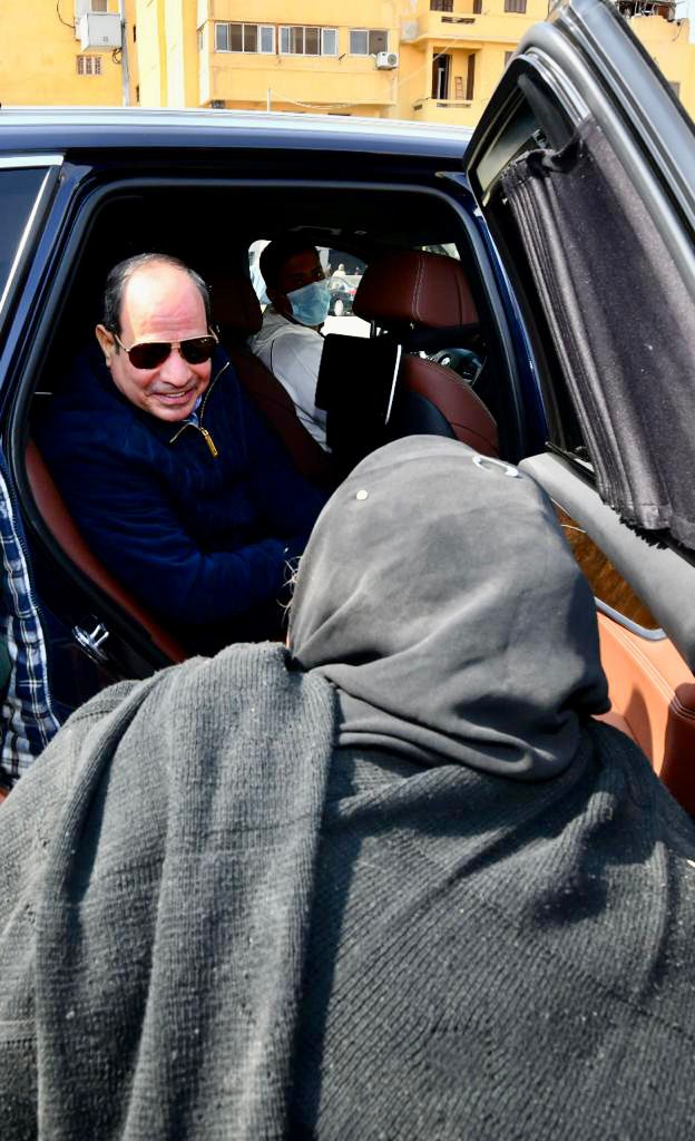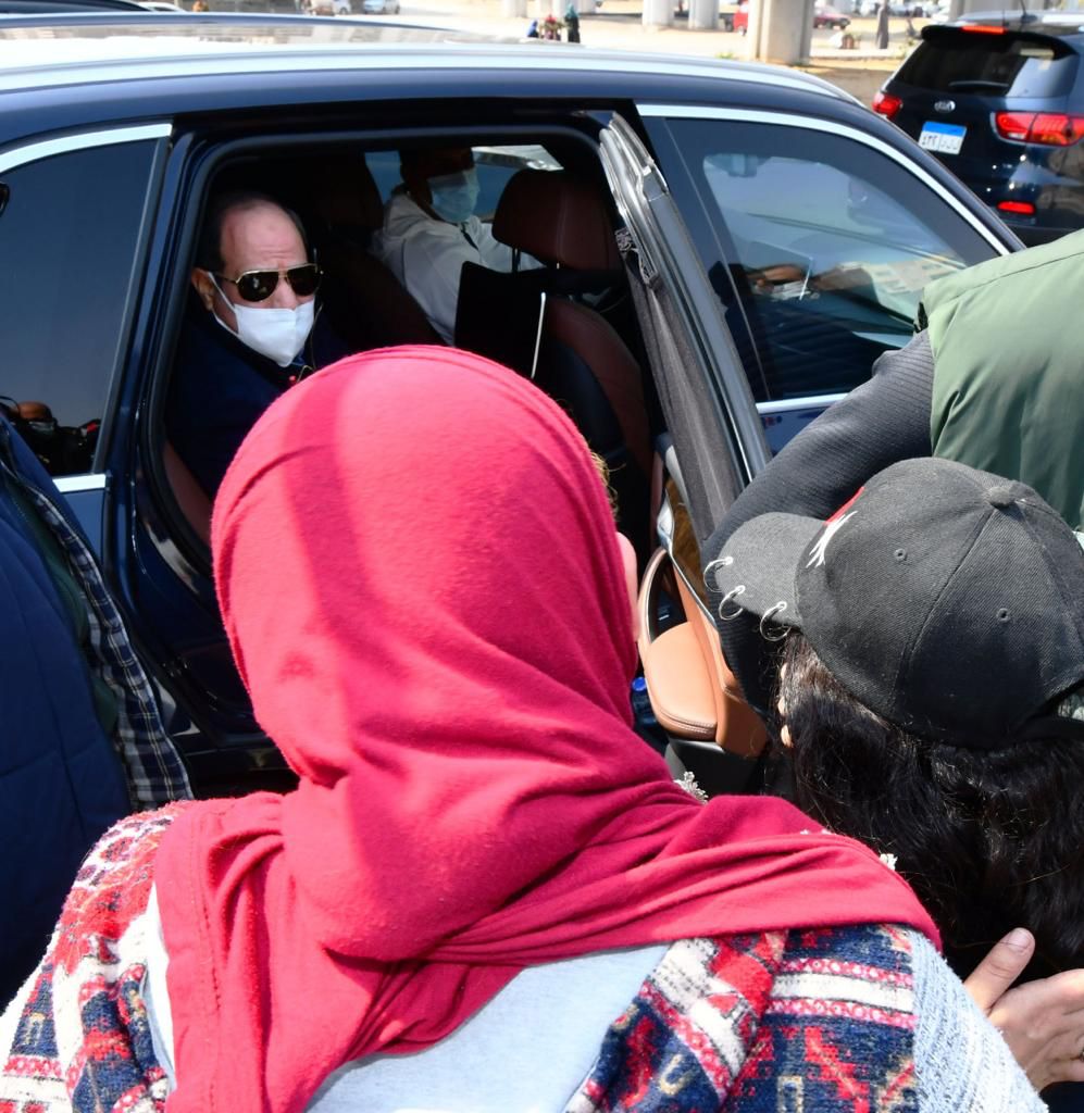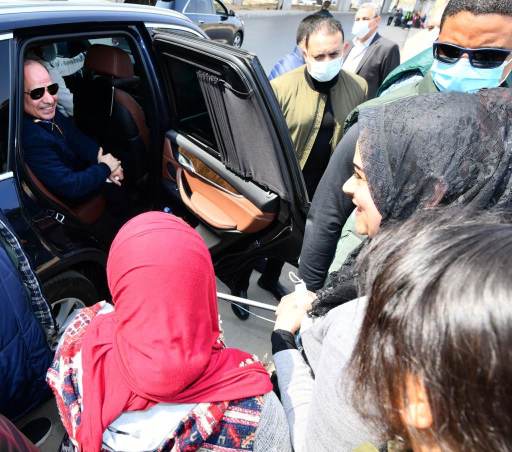 وقال السفير بسام راضي المتحدث الرسمي باسم رئاسة الجمهورية أن الرئيس حرص على التوقف لتبادل الحديث مع المواطنيين والأسر التي تصادف وجودهم اثناء مرور الرئيس، حيث هنأهم بمناسبة قرب حلول شهر رمضان المعظم، كما استفسر عن احوالهم المعيشية، واستمع لمطالبهم