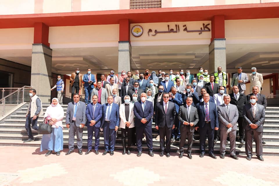 في بداية جولته، افتتح الوزير مبنى كلية الصيدلة، الذي يضم 8 معامل طلابية، ويضم (قسم الصيدلانيات والصيدلة الصناعية - قسم العقاقير - قسم الكيمياء الدوائية - قسم الكيمياء الحيوية - قسم علم الأدوية - قسم الكيمياء التحليلية الصيدلية - قسم الصيدلة الإكلينيكية - قسم الميكروبيولوجيا والمناعة)، بالإضافة إلى المكاتب الإدارية و6 فصول دراسية، وتم افتتاح مبنى كلية العلوم الذي يُقام على مساحة 5500 متر مسطح، ويتكون من ثلاثة أجنحة لأقسام (الكيمياء والفيزياء والجيولوجيا والرياضة والحيوان والنبات)، ويضم 6 مدرجات و13 معملًا طلابيًا و12 معملًا بحثيًا و8 فصول وأربع قاعات دراسية ومكتبة، كما قامت الجامعة بإنشاء سور وبوابات لمقر الجامعة على مساحة 1000 فدان، ويشتمل على البوابة الرئيسية وثلاث بوابات فرعية وسور بطول أربعة كيلومتر ونصف.
