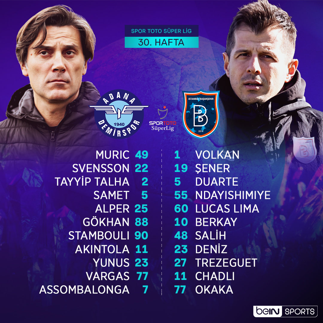 أعلن المدير الفني لفريق باشاك شهير، إيمري بيلوزوجلو، تشكيل اللاعبين لمباراة أدانا ديمير سبور في الجولة الثلاثين من بطولة الدوري التركي.