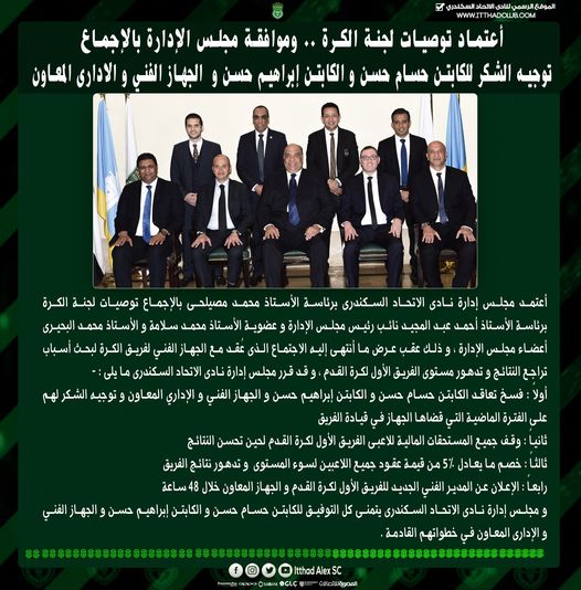 وأكدت لجنة الكرة لجماهير زعيم الثغر أن جميع القرارات التي سوف يتم اتخاذها والخاصة بمستقبل الفريق الأول لكرة القدم سيكون هدفها في المقام الأول صالح هذا الكيان العريق.
