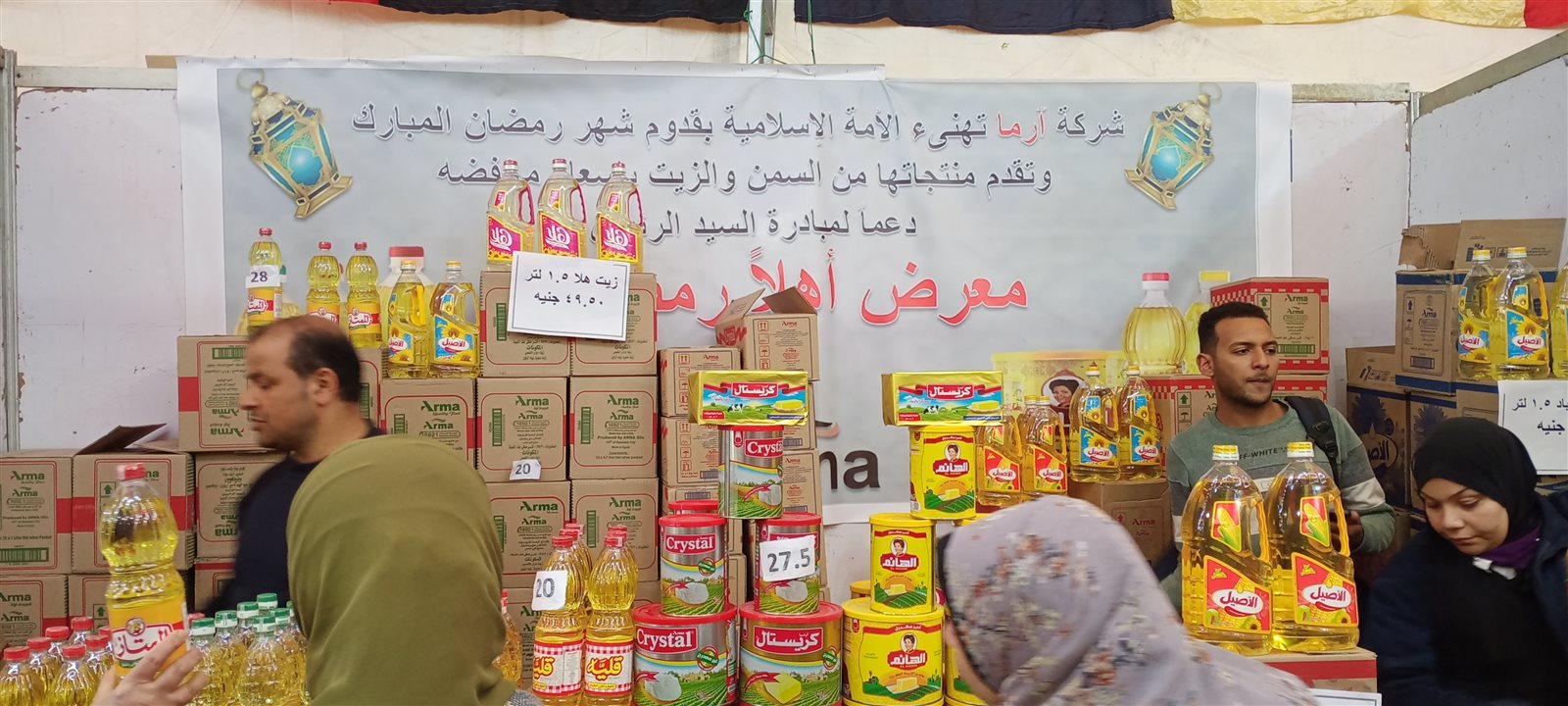 ويحتوي المعرض على كل مستلزمات سلع رمضان بأسعار مخفضة، حيث يبلغ سعر كرتونة البيض 50 جنيه وشيكارة المكرونة 10 كيلو ب100 جنيه وأسعار البلح تتراوح بين 13:20 جنيها، وكيلو السكر ب10 جنيهات، وزجاجة الزيت 1.5 لتر ب44 جنيها، وعلبة السمنة 1.5 كجم ب53.5 جنيه.