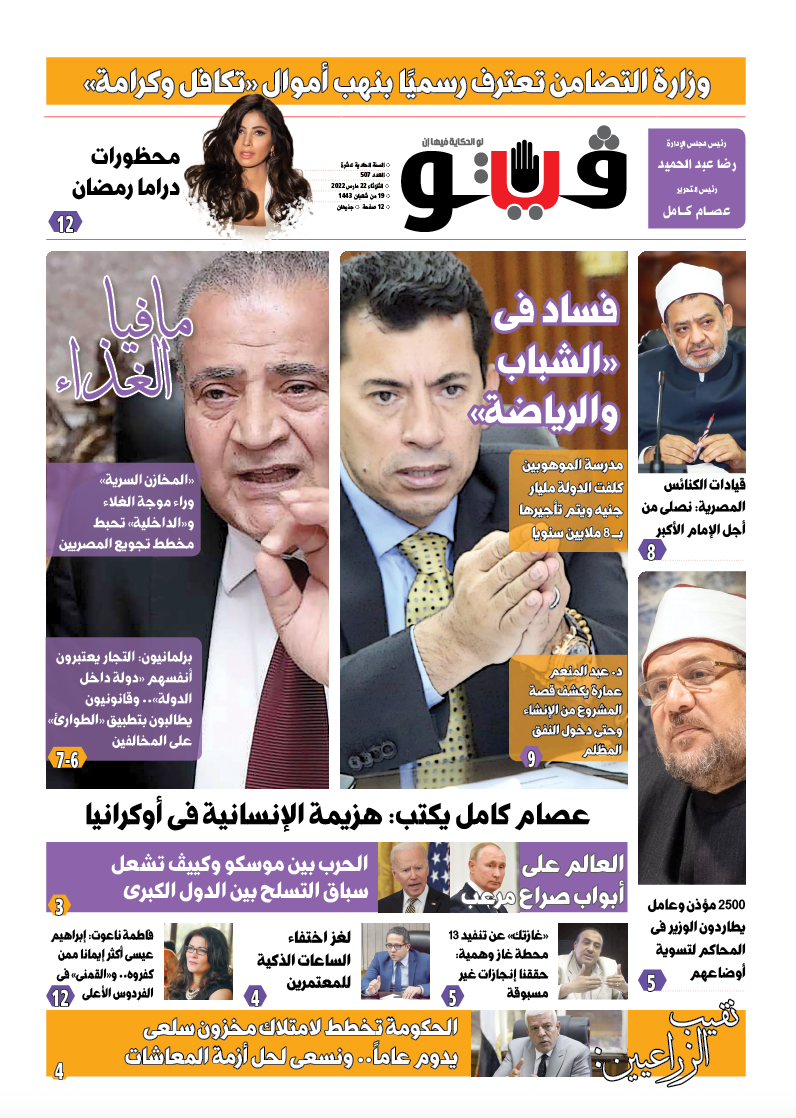 تكشف فيتو في عددها الجديد عن الأسباب التي أدت إلى ارتفاع الأسعار عن طريق محتكري السلع وتخزينها في مخازن سرية حيث استطاعت أجهزة الدولة إحباط هذا المخطط، وقانونيون يطالبون بتطبيق «الطوارئ» على المخالفين.