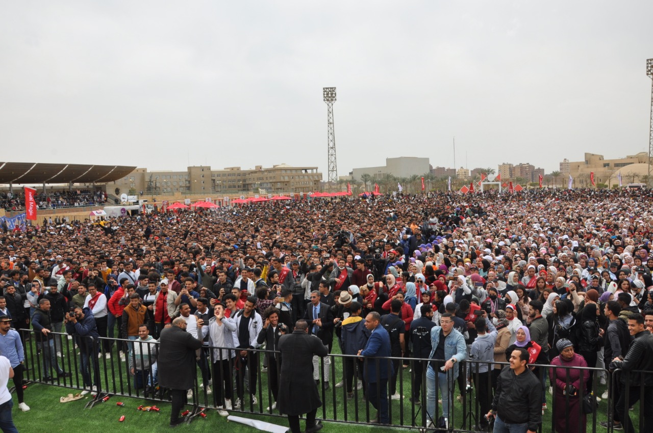 انطلقت فعاليات الحفل الفنى الذي نظمته أسرة من أجل مصر المركزية بجامعة حلوان، بالتعاون مع اتحاد طلاب الجامعة بحضور اكثر من 45 ألف طالب وطالبة.