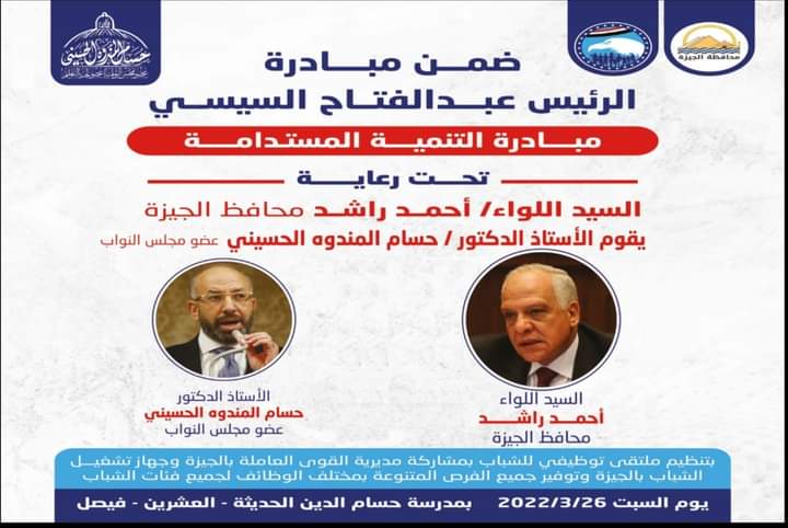يأتي ذلك ضمن مبادرة الرئيس عبد الفتاح السيسي، لتوفير فرص عمل للشباب، وتحت رعاية اللواء أحمد راشد، محافظ الجيزة.