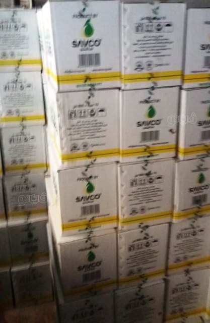 بإجمالي كمية مقدارها 3 أطنان، وكمية من الزيت مقدارها 320 كرتونة، بداخل كل كرتونة 12 زجاجة، سعة الزجاجة 800 مليلتر مجهول المصدر، بإجمالي كمية مقدارها 3 طن و 72 كيلوجرام.