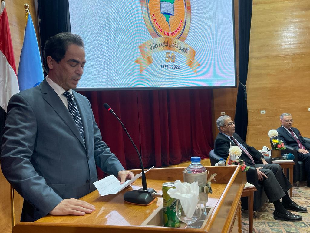جاء ذلك في حضور الدكتور كمال عكاشة نائب رئيس الجامعة للدراسات العليا والبحوث، والدكتور محمد حسين نائب رئيس الجامعة للتعليم والطلاب، والكاتب أحمد المسلمانى عضو مجلس الجامعة، والدكتور ممدوح المصرى عميد كلية الآداب المستشار السياسى لجامعة طنطا ولفيف من عمداء الكليات.