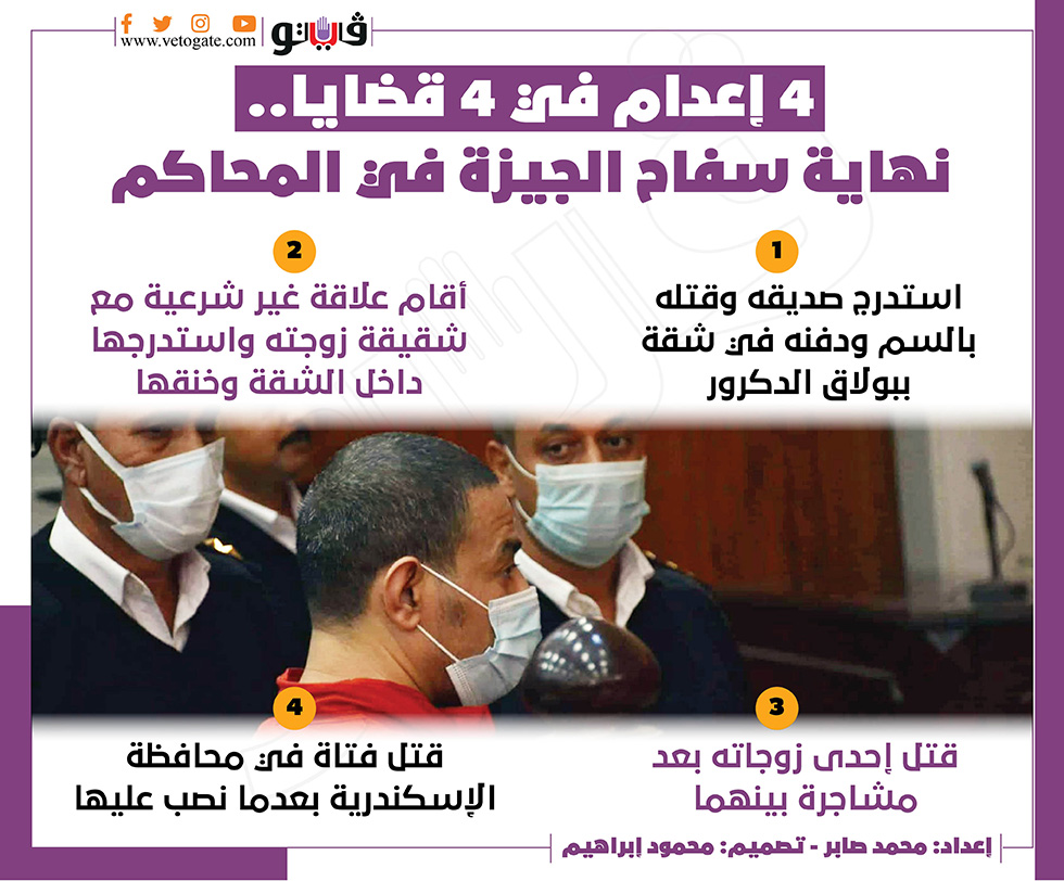 4 إعدام في 4 قضايا.. نهاية سفاح الجيزة في المحاكم | انفوجراف الثلاثاء 22/مارس/2022 - 07:49 م 3/22/2022 7:49:40 PM سفاح الجيزة محمد صابر شارك طباعة 18 حجم الخط شارك طباعة بولاق الدكرور محافظة الإسكندرية علاقة غير شرعية سفاح الجيزة ة بولاق الدكرور