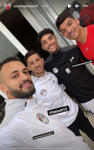 نشر عمر مرموش مهاجم منتخب مصر المحترف بصفوف شتوتجارت الألماني عبر حسابه على موقع الصور الشهير إنستجرام صورة له من داخل معسكر منتخب مصر، رفقة زملائه بالفريق أحمد فتوح والحارس محمد صبحي ومهاجمسموحة مروان حمدي.