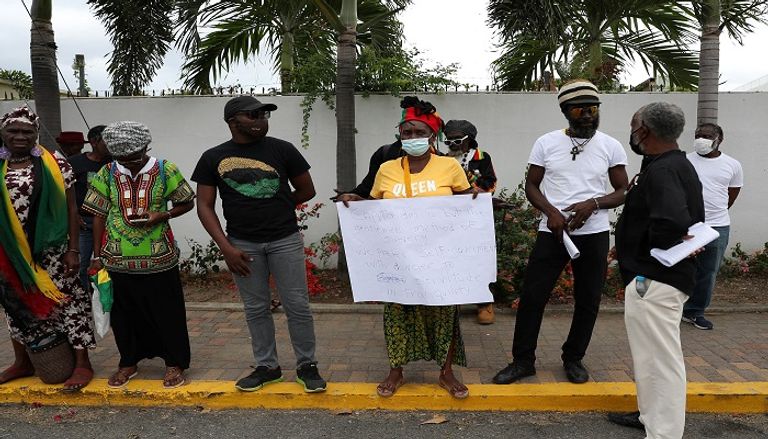 وفي وقت سابق، تجمع العشرات خارج المفوضية السامية البريطانية، التي تشكل البعثة الدبلوماسية البريطانية في كينجستون عاصمة جامايكا، ورددوا الأغاني التقليدية حاملين لافتات كتب عليها عبارة عامية تحث بريطانيا على الاعتذار.