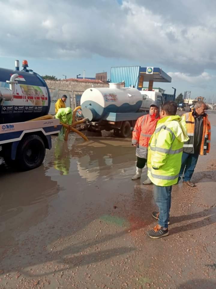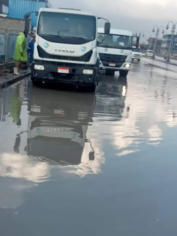 مسئولو الإسكندرية ينتشرون في الشوارع لشفط مياه الأمطار | صور