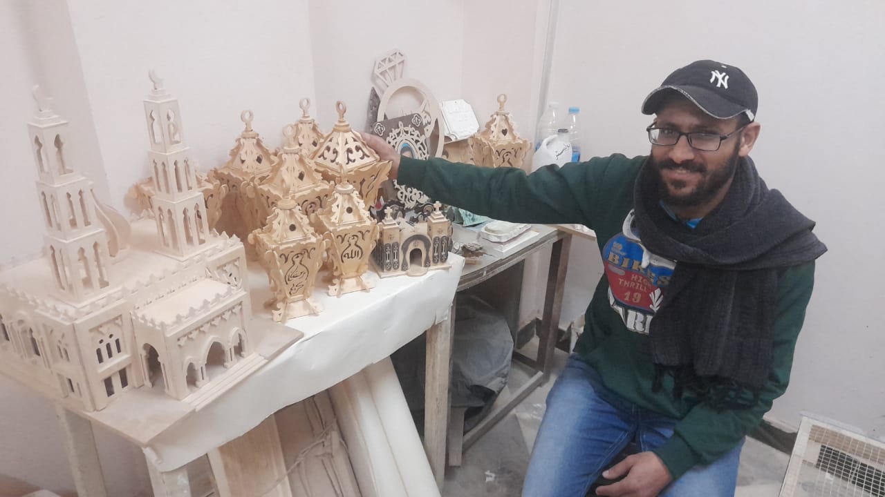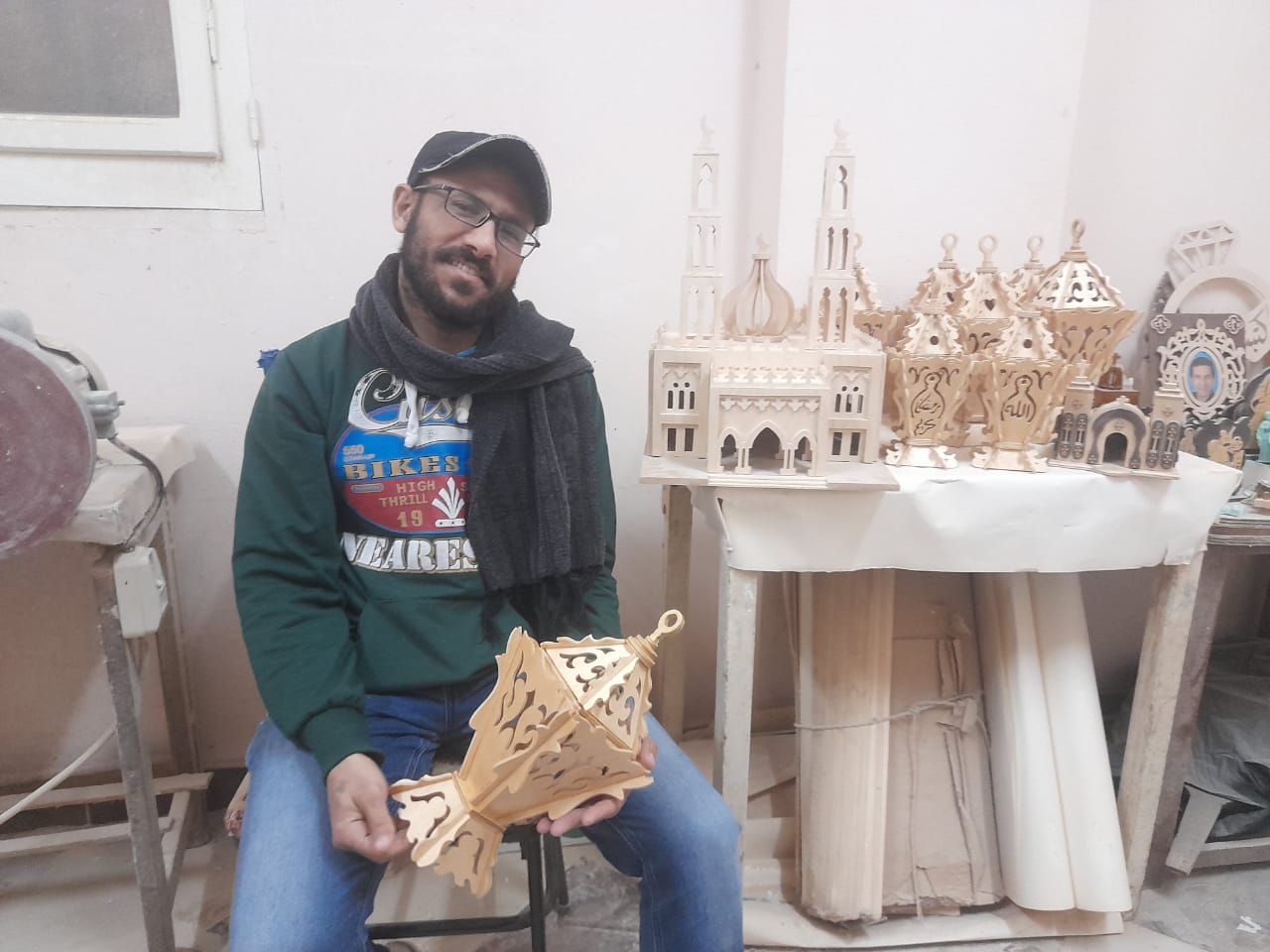 وقال "ميلاد": بدأت تصنيع مجسمات المساجد مبكرًا، حيث يعد أول إنتاج لمسجد كان من خلاله الورشة الكبيرة اللي اشتغلت فيها في بدايتي فى دير المحرق بأسيوط، وأقوم بإنتاج مجسمات مساجد خشبية وفوانيس رمضان كل عام، بداخل الورشة الخاصة به ببني سويف، يدويًا مستخدمًا ما كينة لحفر الرموز والأشكال الخاصة بشهر رمضان.