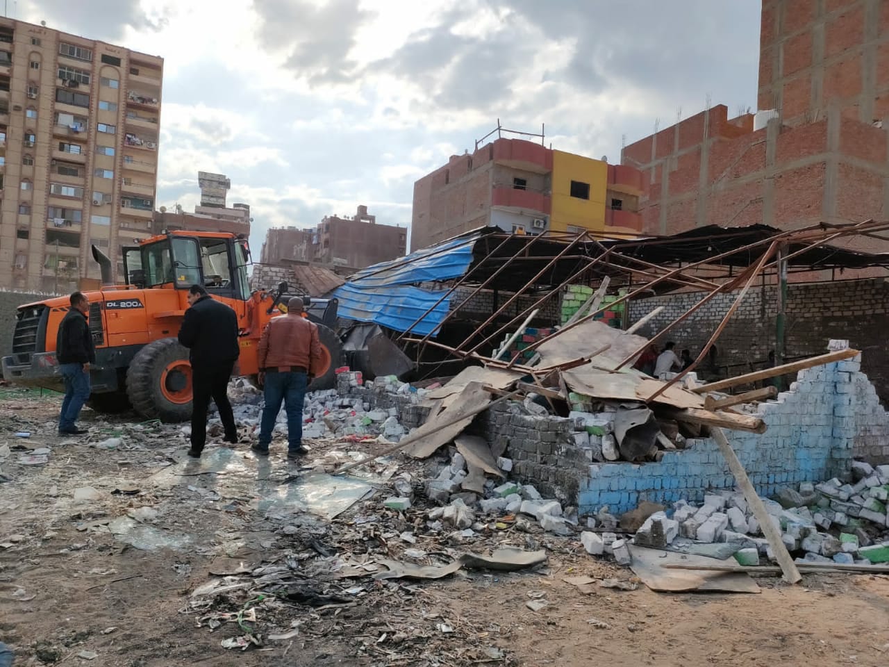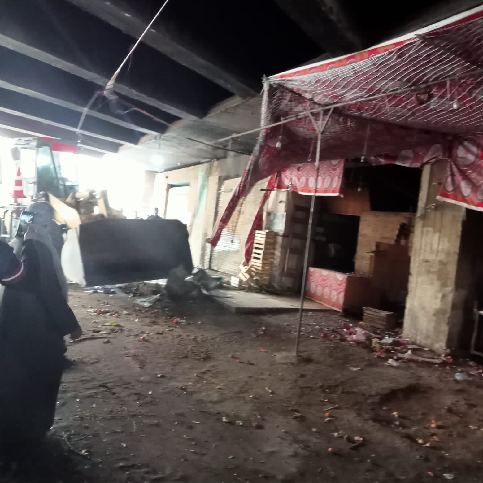 وفي حي الوراق تم ازاله تعديات علي اراضي املاك الدولة ولاية الطرق والكباري شملت اكشاك وغرف مقامه بالمخالفه وتم اتخاذ الاجراءات القانونية حيال المخالفين.