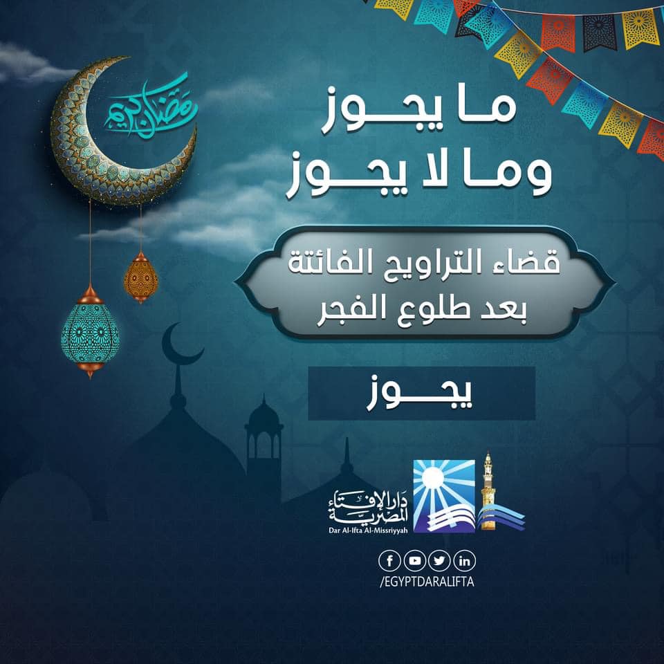 4. قضاء التراويح الفائتة بعد طلوع الفجر: يجوز.