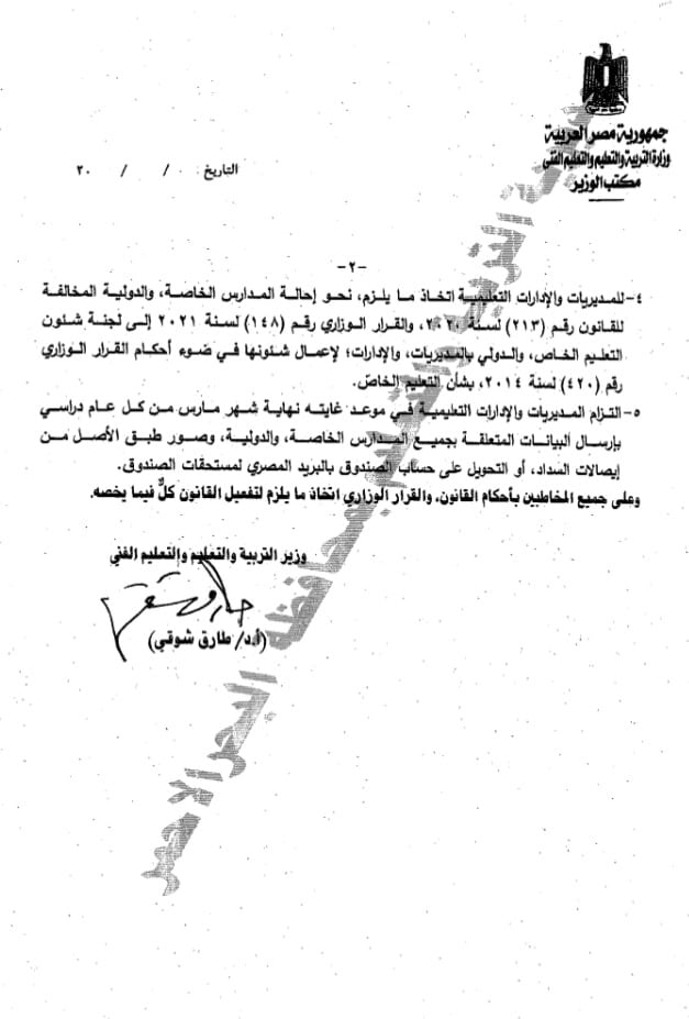 قرار عاجل من التعليم بشأن المدارس الخاصة والدولية | مستند