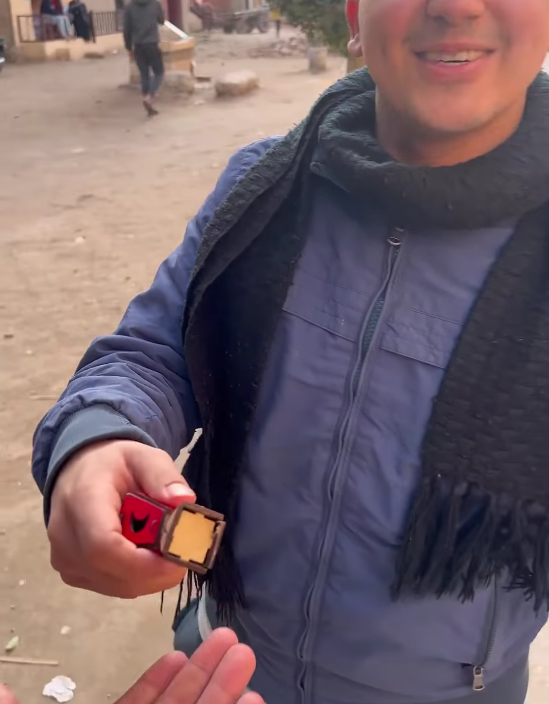ابتكر شاب طريقة ظريفة لإسعاد أهالي قريته "كفر كلا الباب" وتقديم التهنئة لهم بقدوم شهر رمضان المبارك، بوضع فوانيس صغيرة الحجم بداخله كفه، وعندما يمر عليه شخصا يبتسم له ويدعوه لملامسة يده بطريقة "البوكس"، وما أن تتم الملامسة حتى يفتح يده ليكشف عن فانوس رمضان صغير الحجم الذي كان يمسكه في يده.